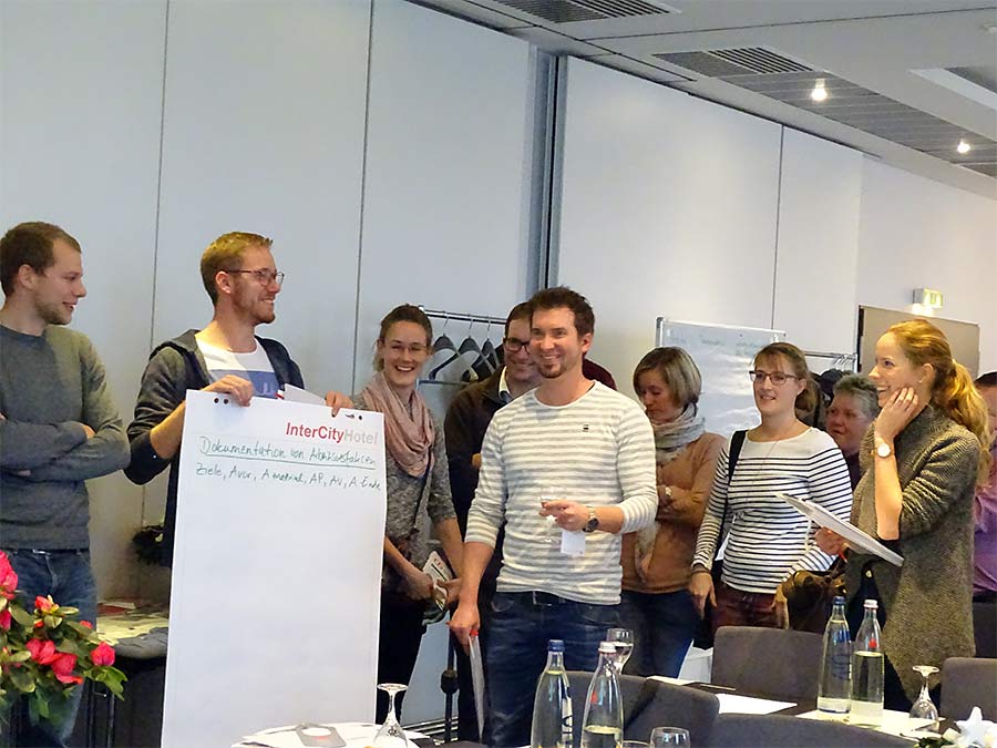 Wer Arbeitsverfahren standardisiert, diese den Mitarbeitern in Schulungen vermittelt und die Abläufe auch Mitarbeitern mit mangelhaften Deutschkenntnissen klar vermittelt, kann Arbeitskapazitäten einsparen. Auf Grundlage dieser These übten sich die Azercaner unter Anleitung der Arbeitswirtschafts-Expertin Theresa Sbardellotto in einer optimierten Wissensvermittlung.
